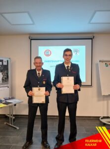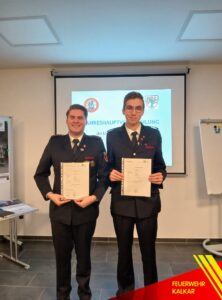 Maurice Bücken und Lukas Matenaer bestanden den Maschinist für Löschfahrzeuge.