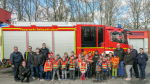 Am letzten Wochenende machten sich 22 Löschzwerge der Freiwilligen Feuerwehr Kalkar mit ihren Betreuern auf den Weg nach Gelsenkirchen, um dort die Hauptwache der Berufsfeuerwehr zu besuchen. Dort wurden sie von dem Leitenden Branddirektor Michael Axinger begrüßt. Die Löschzwerge wurden dann in zwei Gruppen durch die Wache geführt und konnten sehen, wie die Berufsfeuerwehr einer Großstadt ausgestattet ist. Mike Ulbrich und Ergin Arslan zeigten in der Wache die Leitstelle, die Küche, die Sporthalle und die Fahrzeughallen mit vielen Feuerwehrfahrzeugen, die die Löschzwerge auch von Innen bestaunen konnten. Die Atemschutzstrecke wurde dann selbst von den Kindern ausprobiert. Leider musste die Fahrt mit der Drehleiter aufgrund des schlechten Wetters ausfallen. Im Anschluss ging es zum Löschzug 18 der Freiwilligen Feuerwehr nach Gelsenkirchen Ueckendorf. Dort wartete schon das Mittagessen, Currywurst mit Brötchen, auf die Kinder und Betreuer. Danach wurde noch die Wache der Freiwilligen Feuerwehr angesehen und es wurde noch ein wenig auf dem Hof der Feuerwehr gespielt. Am Schluss wurde Mike Ulbrich ein kleines Dankeschön überreicht. Nach diesem spannenden Ausflug machten sich die müden Löschzwerge mit vielen neuen Eindrücken sehr zufrieden auf den Heimweg nach Kalkar.